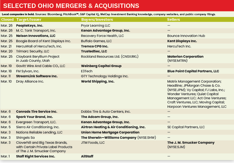 The Cleveland M&A market experienced an 18.8 percent increase in activity in March 2025 compared to the same period in 2024. Northeast Ohio-based companies Kenan Advantage Group, World Shipping, and Union Home Mortgage all completed acquisitions during the month of March.
